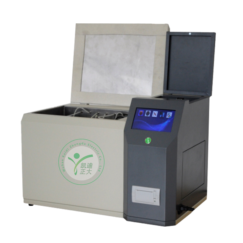 KDSR-303D全自動(dòng)水溶性酸測(cè)試儀(比色法)是根據(jù)中華人民共和國國家標(biāo)準(zhǔn)GB/T7598-2008運(yùn)行中變壓器油水溶性酸測(cè)試法及相關(guān)標(biāo)準(zhǔn)設(shè)計(jì)制造。采用大屏幕液晶顯示,利用微處理器控制,可以根據(jù)用戶的設(shè)定條件自動(dòng)完成加熱、恒溫、振蕩、取樣、測(cè)試、清洗、打印等功能,可以一次性測(cè)量1-6個(gè)樣品,縮短了用戶的測(cè)試時(shí)間。