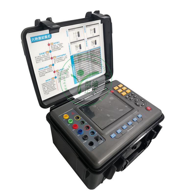 KDZD5000Z電能質(zhì)量分析儀是我公司研制的一款專為現(xiàn)場測試的三相、多功能、智能化、人機操作簡潔的綜合型測試儀器。具有容易使用,大液晶彩屏顯示,高分辨率,中英文雙語操作界面,箱式結(jié)構(gòu)外殼等特點。可同時測量4路電流(ABC三相及中性線電流),4路電壓(ABC三相電壓及中性線對地電壓)、電流電壓的峰值、一段時間內(nèi)的最大最小值、三相不平衡度、短時電壓閃變、變壓器K因數(shù)、有功功率、無功功率、視在功率、功率因數(shù)、位移功率因數(shù)、有功電能、無功電能、視在電能、諧波比、總諧波失真度等;顯示電流電壓的實時波形、相量圖、諧波比柱形圖;動態(tài)捕捉電壓電流瞬時變化,監(jiān)測啟動電流,監(jiān)測各電力參數(shù)并生成告警列表,長時間記錄測試數(shù)據(jù)并生成趨勢曲線圖等功能。